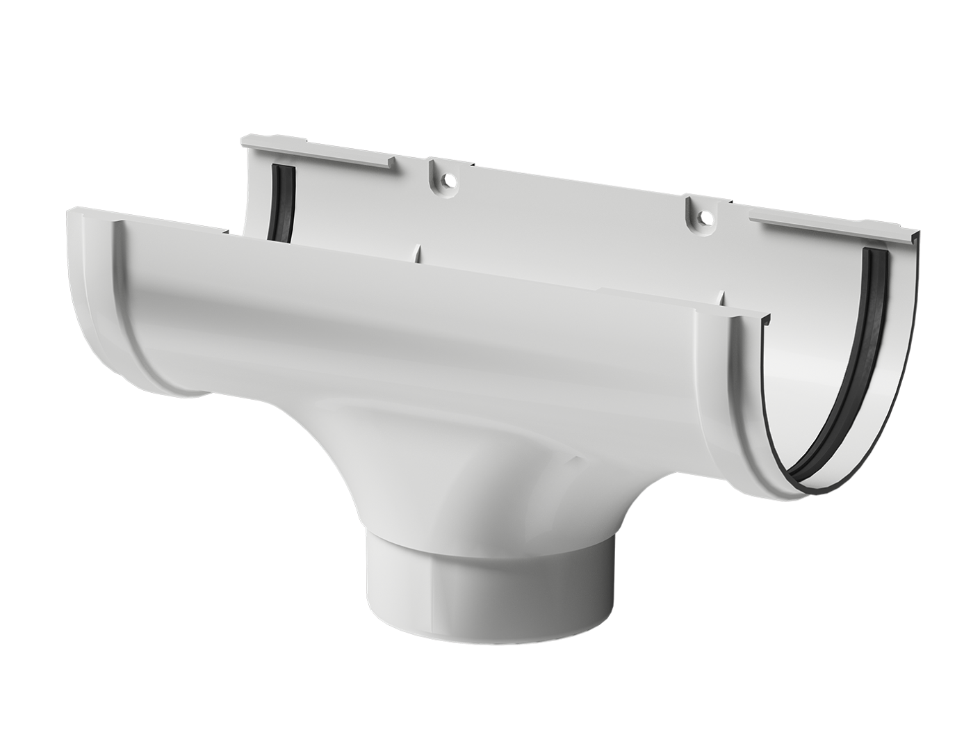 Форма и размер воронки схожи с желобом, за счет чего обеспечивается гармоничный переход. Все элементы соединяются друг с другом без дополнительных креплений, заметно упрощая монтаж.