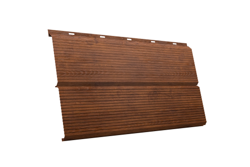 - В отличие от облицовки фасада деревом, металлический сайдинг «ЭкоБрус GL» прост в монтаже и не требует дополнительного послемонтажного ухода.