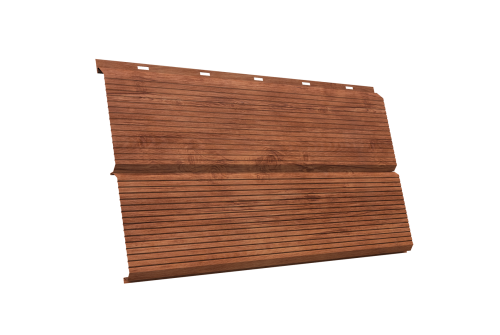 - При использовании покрытия Colority® Print, «ЭкоБрус GL» достигает максимального сходства с клееным брусом. Надежное скрытое сцепление панелей придает фасаду здания естественный вид.