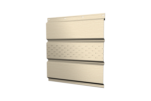 Описание товара: "Софит металлический центральная перфорация 0,45 Print Elite с пленкой Milky Wood TwinColor"
