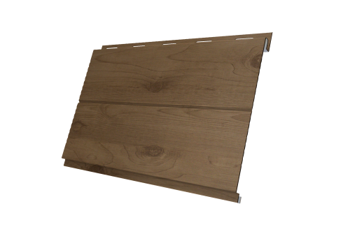 - Универсальность использования: может использоваться в качестве софитов для подшивки карнизных и фронтонных свесов, цокольного сайдинга и классического использования на фасаде. Оригинальность достигается за счет вертикального крепления панелей. Сочетание сайдинга Вертикаль с горизонтальным сайдингом может стать интересным дизайнерским решением. Надежное скрытое сцепление панелей придает фасаду здания естественный вид.